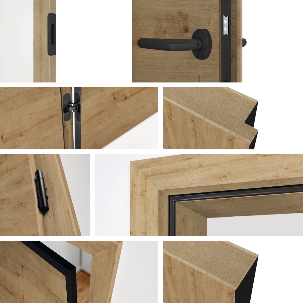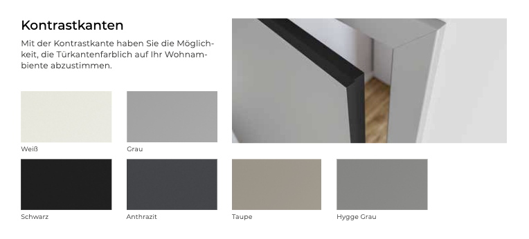 Gefälzt oder stumpf einschlagend. Verschiedene Wandstärken abdeckbar. Zwei moderne Dekore verfügbar. Im Konfigurator individuell zusammenstellen.